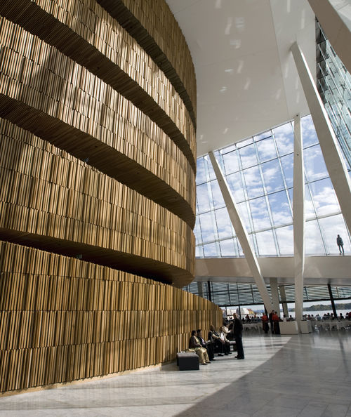 In the foyer the public is met by a light, open space with a large, undulating oakwood wall. Behind this wall are the opera house’s three performance halls, with the Main Stage forming the heart of the building. Acoustic requirements determined the interior design of the Main Stage, and the combination of timbre and tonal possibilities and the dark, golden woodwork can be said to have transformed the Main Stage into a singularly outsized wooden instrument.